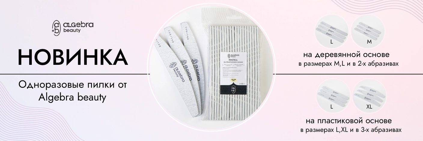 Algebra Beauty — российский бренд профессиональных инструментов для маникюра и педикюра. Мы производим сменные абразивные файлы, пилки на деревянной и пластиковой основе, бафы разных форматов и жёсткости.
