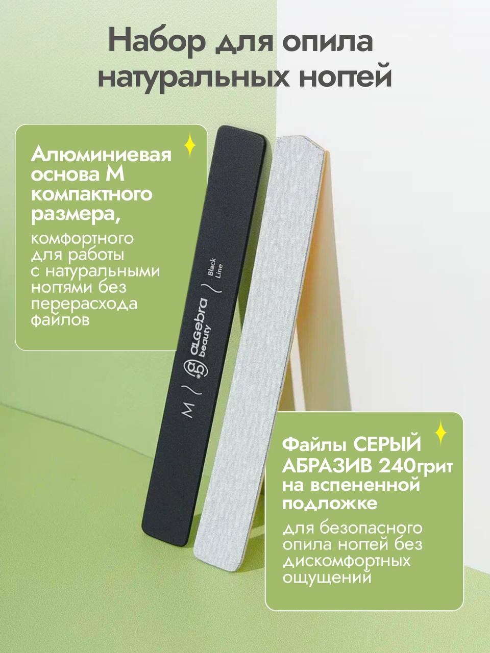 В набор входят черная алюминиевая основа М и серые файлы на вспененной основе 240 грит.